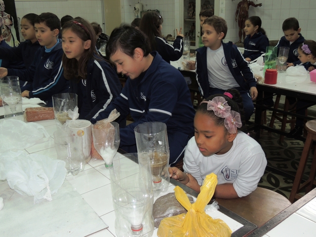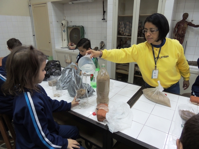 Os alunos do 2º21 realizaram o estudo sobre o solo e tipos de solo. Como culminância, realizaram duas atividades importantes. Confeccionaram painéis sobre os tipos de solo e suas características e apresentaram aos colegas das turmas seguintes. Para compreenderem a impermeabilidade dos solos, realizaram uma experiência, onde constataram que a areia é permeável e a argila impermeável. Valeu turminha!