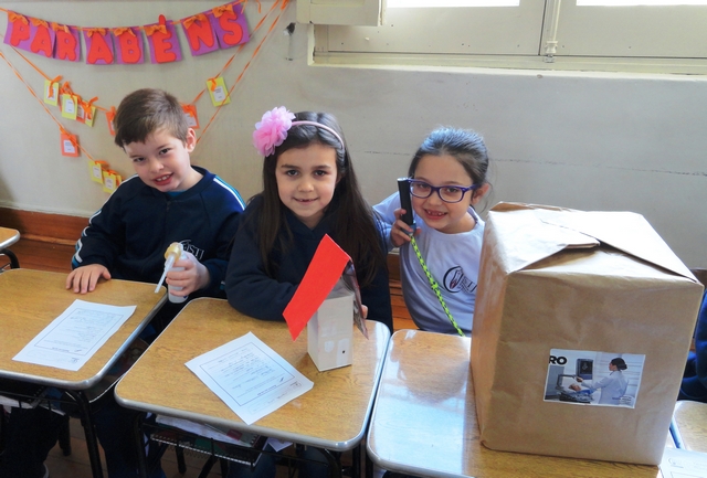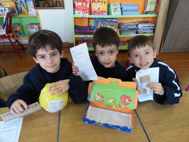 Para a introdução do tema “Profissões”, cada aluno da turma 12 ficou encarregado de entrevistar um familiar e, a partir das respostas oferecidas, produzir com materiais variados, um instrumento utilizado no exercício de sua função. A criatividade foi incrível e o trabalho muito produtivo!