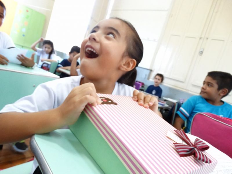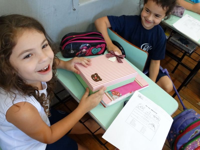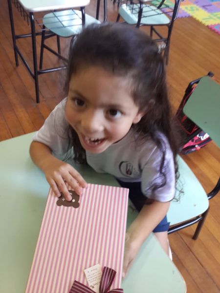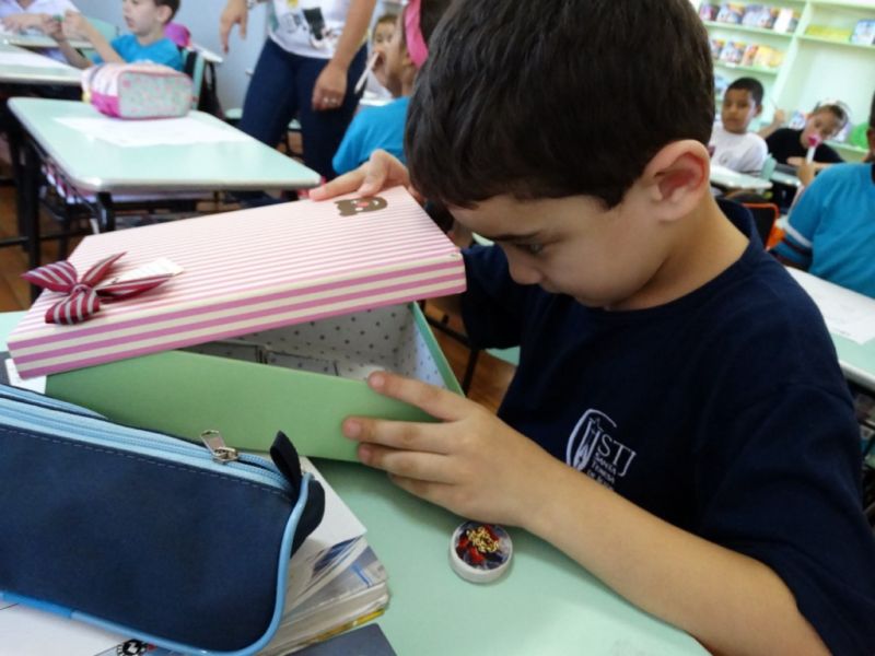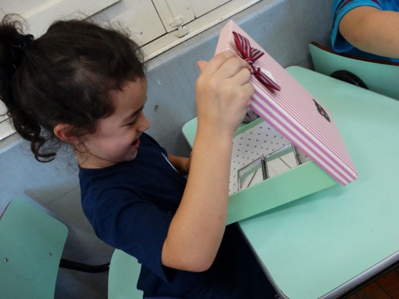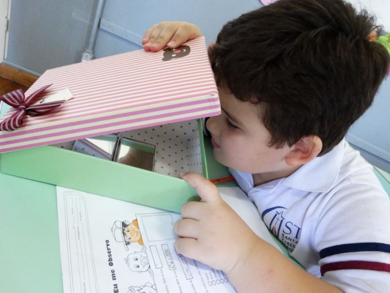 Na tarde desta quarta-feira, na turma do 1º ano da turma 13, foi marcada pela magia, encanto e surpresa. O que será que tem nesta delicada caixa? esse foi questionamento inicial.Depois de muito mistério, cada aluno vivenciou um momento único, momento de encontro consigo mesmo.Na caixa havia pequeno espelho, o objetivo da dinâmica foi de trabalhar identidade , foi um momento divertido e proveitoso