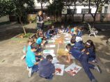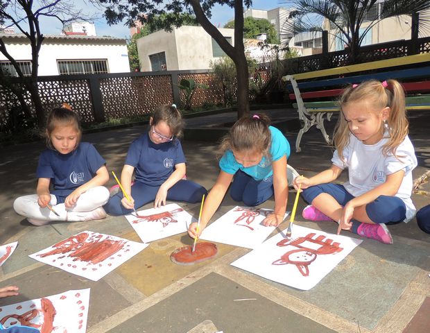 Ouvir histórias, lendas e contos são estratégias fundamentais para estimular a imaginação. A turma 14 ouviu e ilustrou a história "O Grúfalo" de Júlia Donaldson com o objetivo de incentivar a fantasia, que é essencial para a formação dos pequenos leitores.
