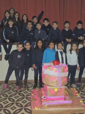 Contemplando alguns dos objetivos do projeto “O texto no contexto”, os alunos dos 3º anos trabalharam com o livro de Jonas Ribeiro “Os bolos gigantes”. Essa história traz uma lição de solidariedade, permeada de valores cristãos, através da prática de uma família boleira que confeccionou bolos gigantes capazes de sanar as fomes do mundo. O trabalho rendeu lindas produções textuais, atentas à realidade, e culminou em uma produção artística integrando as turmas.